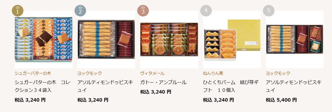 - 1位…シュガーバターの木 コレクション34袋入 3,240円