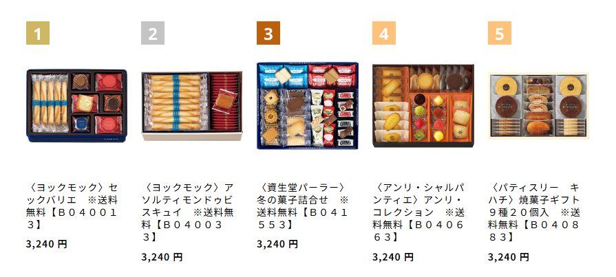 - 1位…〈ヨックモック〉セックバリエ 3,240円